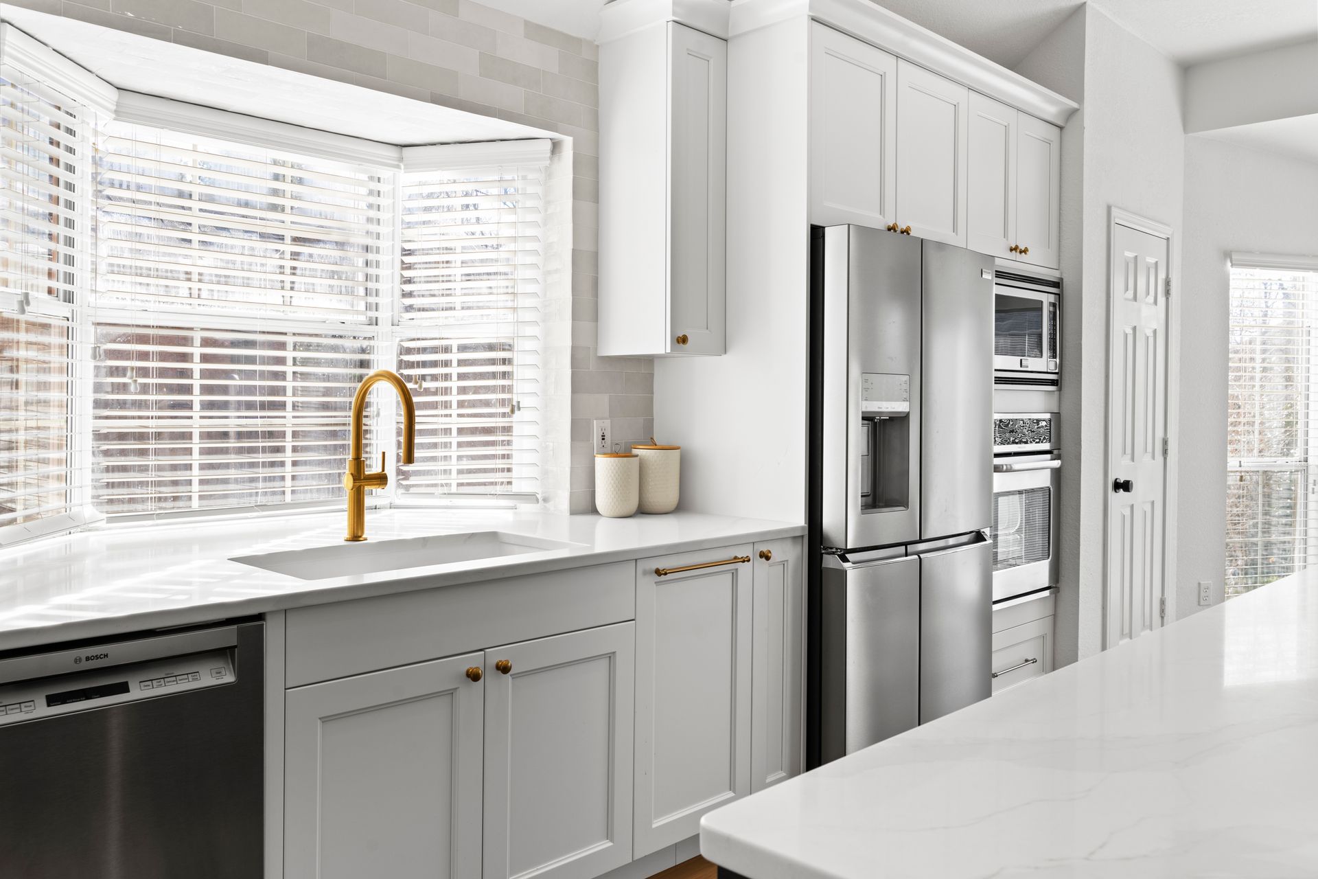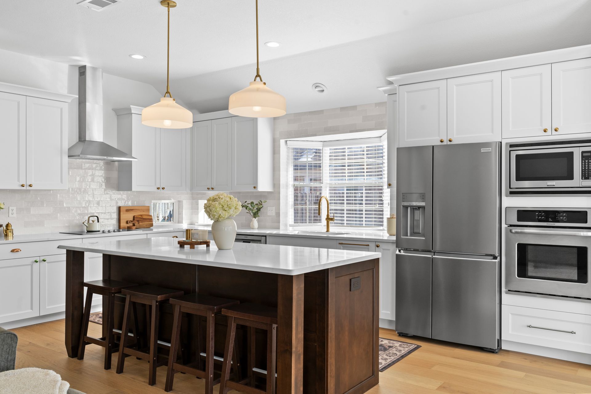 This home underwent a full kitchen renovation due to water damage, requiring the removal of damaged cabinetry and materials. We installed brand-new, custom-designed kitchen cabinets that enhance both functionality and aesthetics. With a warm, inviting finish, these cabinets maximize storage, improve organization, and seamlessly blend with the home's style. Our quality cabinets and precise installation ensure durability and long-lasting quality, restoring the heart of the home to its full beauty and efficiency.