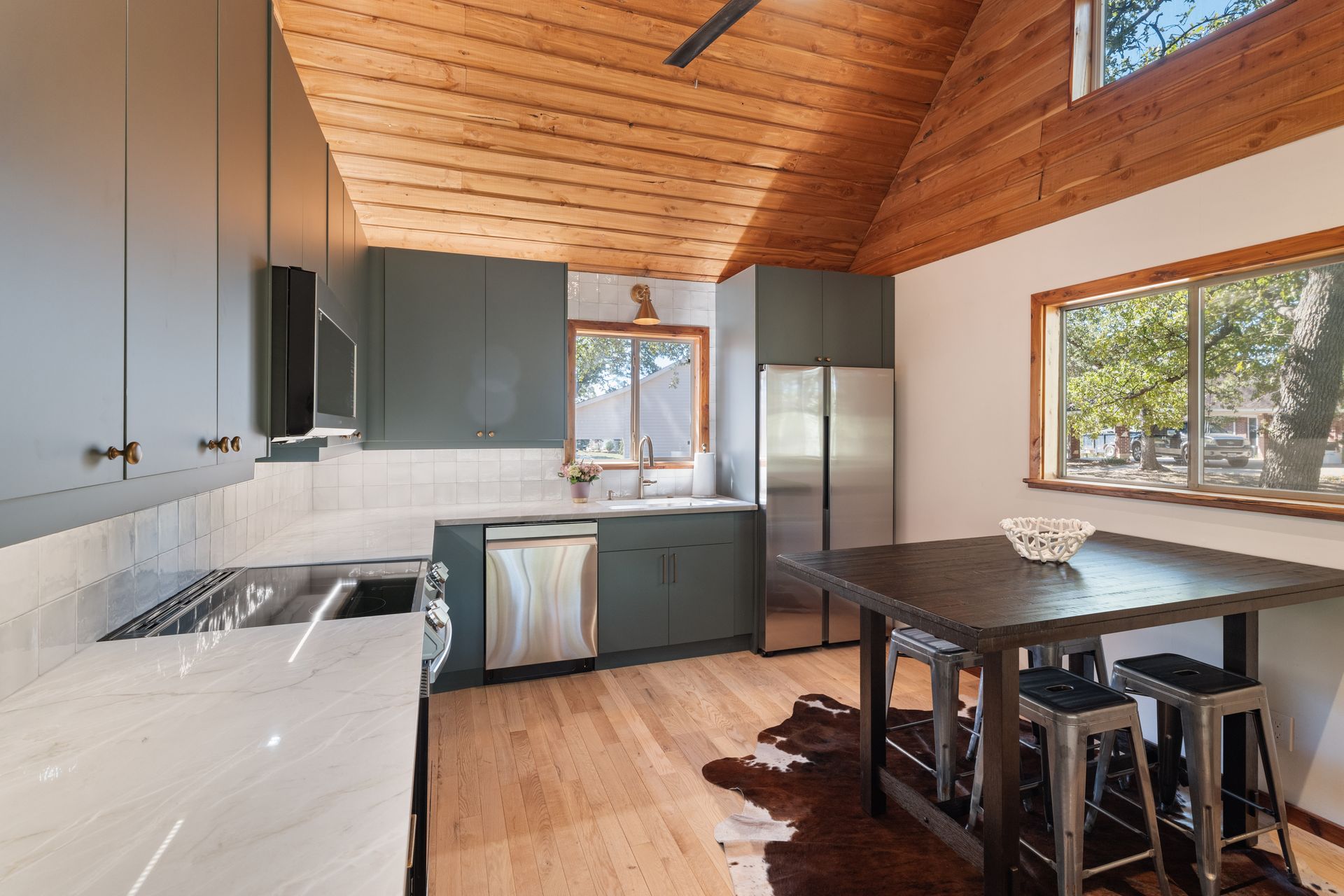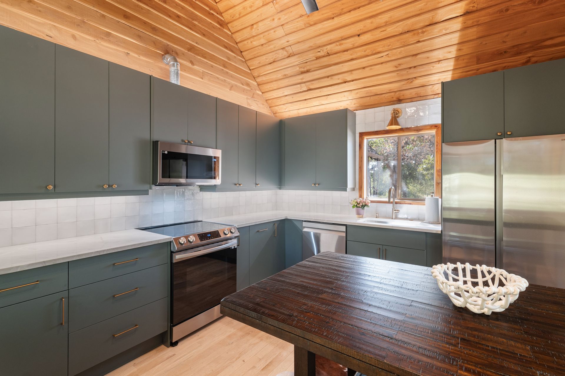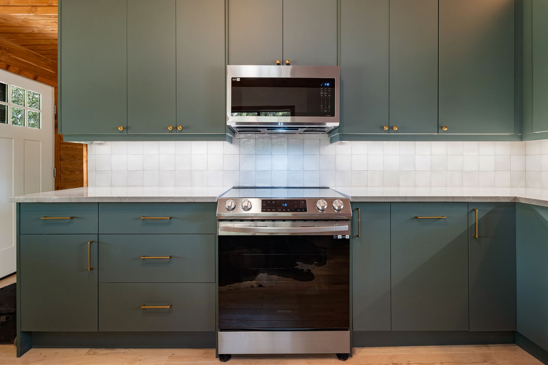 This cabin was re-designed with the intention of elevating the entire look of the home. Our client requested a modern-contemporary design that brightens the kitchen and enhances the overall space. We added a series of functional cabinets to maximize the use of the space.