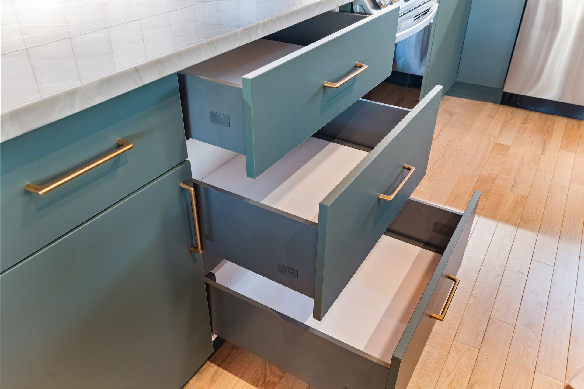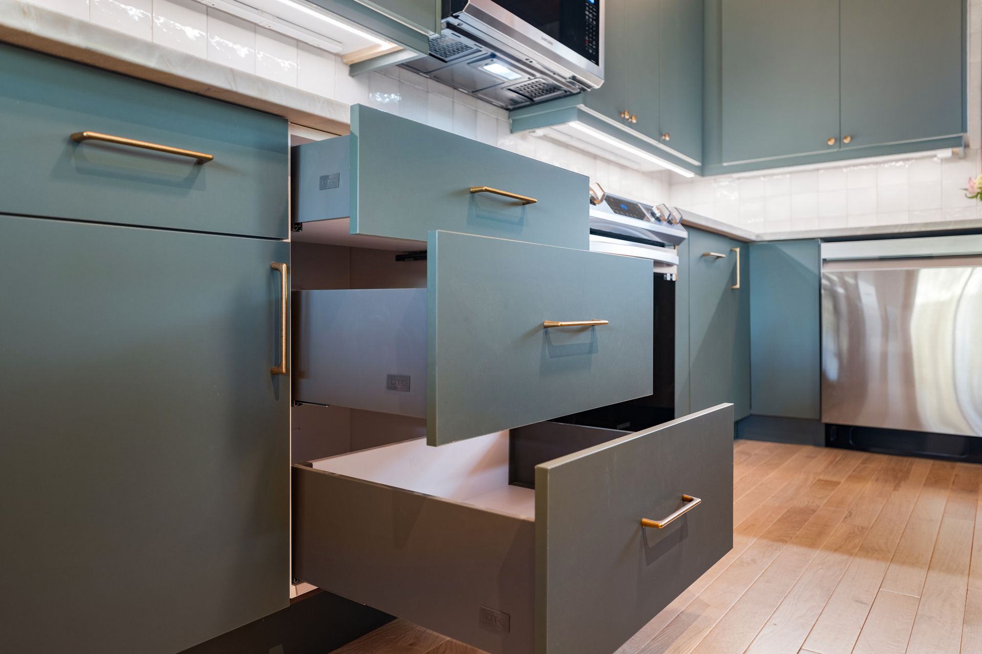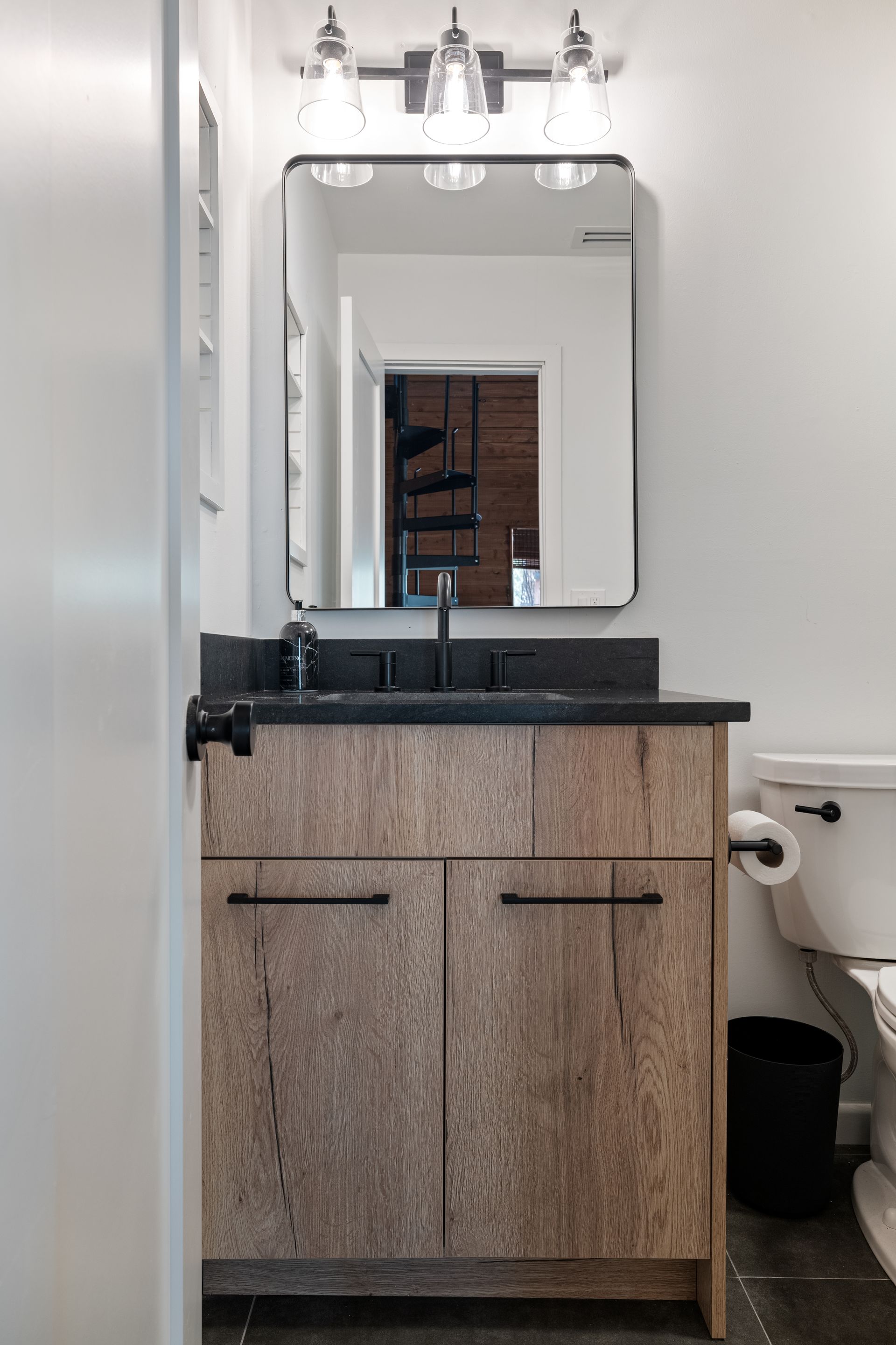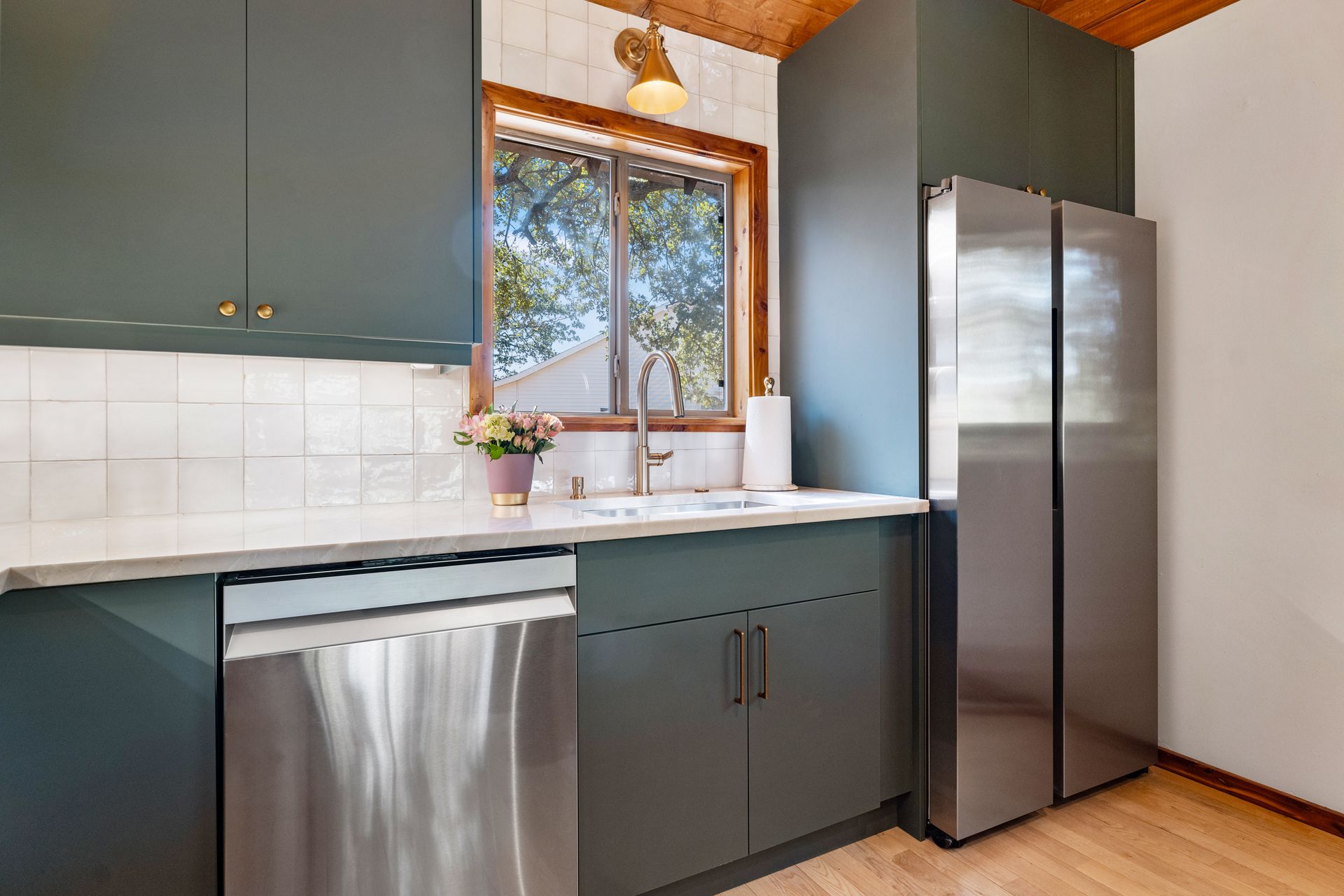 This cabin was re-designed with the intention of elevating the entire look of the home. Our client requested a modern-contemporary design that brightens the kitchen and enhances the overall space. We added a series of functional cabinets to maximize the use of the space.